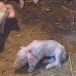 W dniu 11 sierpnia nasze Stowarzyszenie odebrało anonimowy telefon. Zgłoszono, że w jednym z gospodarstw w Brzezówce przebywają świnie, które od kilku dni nie są karmione i pojone, ponieważ gospodarz od dłuższego czasu jest pod wpływem alkoholu. Na miejsce pojechała Policja z Zebrzydowic i kilkukrotnie podejmowała próby wejścia na teren gospodarstwa. Dobudzić pianego gospodarza udało się dopiero w następnym dniu. Po wejściu na teren ujawniono warchlaki bardzo wychudzone, sparaliżowane. Martwego warchlaka pies wyniósł i zaczął zjadać…